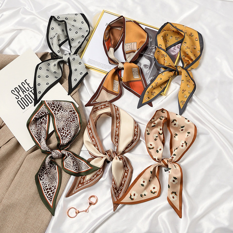 ผ้าพันคอสี่เหลี่ยมผ้าซาตินนุ่มพิมพ์ลายสำหรับผู้หญิงผ้าพันคอคอผ้าโพลีเอสเตอร์นุ่มสำหรับผู้หญิงทันสมัย