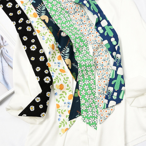 Lenços de Seda Verão Estreito Borda das mulheres Verão Impresso Longo Lenços 6*90cm Lenços para Bag Handle Suporte Ordem Personalizada