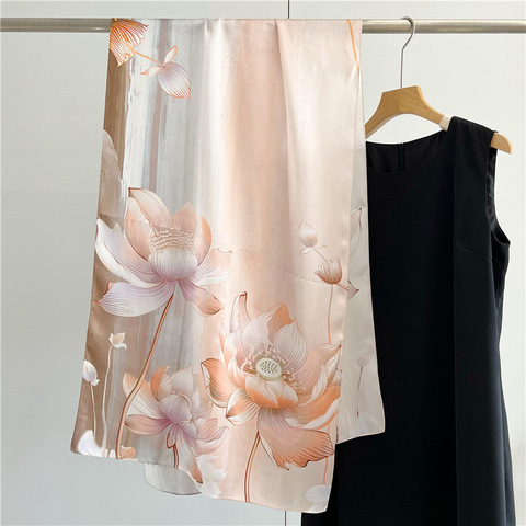 Floral Longo Seda Cetim Lenço Verão Longo Seda Mulberry Elegante Envoltório Xaile Lenços 170x53cm Com Logotipo Personalizado